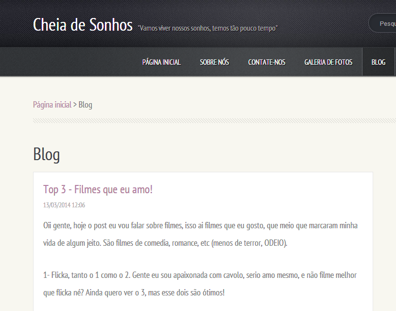 Oii gente, hoje o post eu vou falar sobre filmes, isso ai filmes que eu gosto, que meio que marcaram minha vida de algum jeito. São filmes de comedia, romance, etc (menos de terror, ODEIO).