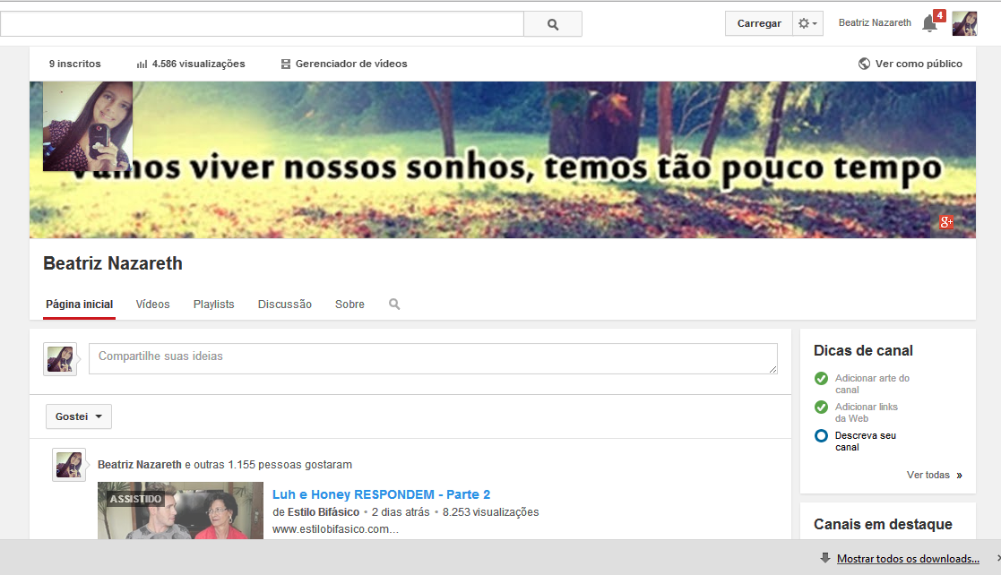 3- Na minha ordem de abrir os sites, logo após vem o Youtube muitos vvideos de bloggeiros eu vejo todos os dias, morro de rir com alguns, estou apaixonada por ver videos do Luh com a Honey (engraçado demais! haha) e a Bia (minha xará linda do Boca Rosa e suas goxxxxtosas kkk)